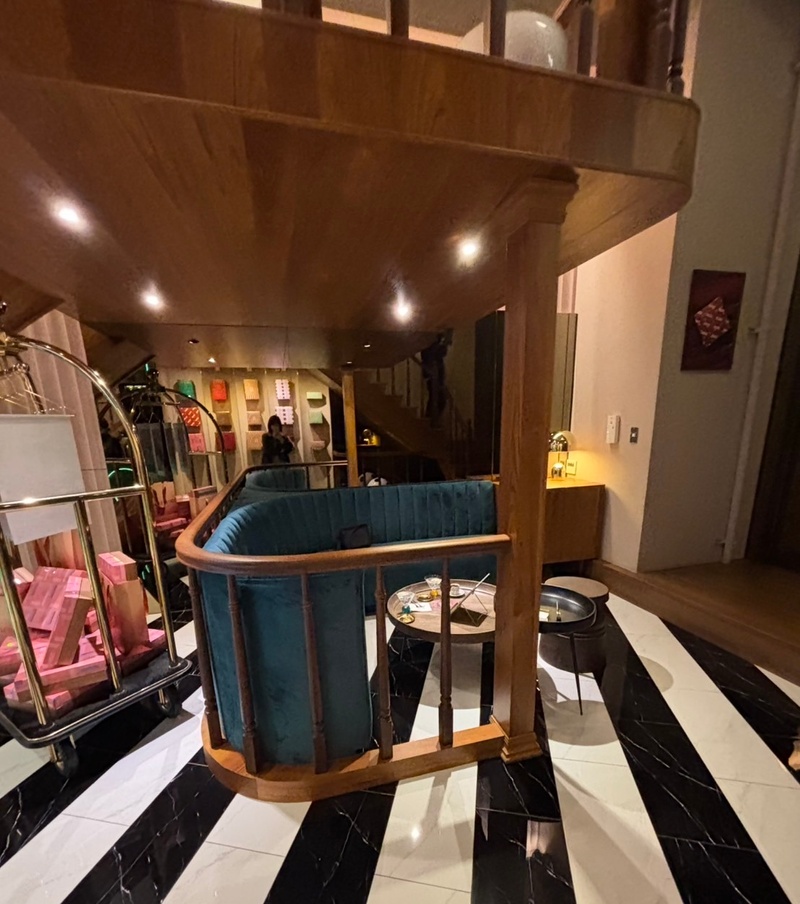 OOH LA LOVE讓我們印象很深刻的地方是,他們會營造一種飯店check in的情境,給我們兩把專屬鑰匙後帶著新人到專屬的空間,附上兩杯檸檬氣泡水,另外還有紅茶或黑咖啡可以選,一開始儀式感直接拉滿!每一個座位區都有不同風格,裝潢很美~