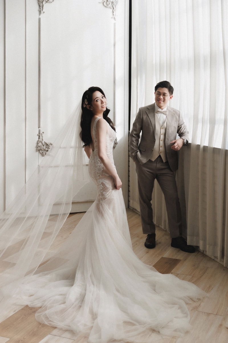 我的禮服顧問lucky也是一個非常具有耐心、服務熱忱的小精靈,依據我們選擇的拍攝場景、身型提供禮服樣式的建議。試穿過程中完全沒有被強迫推銷的不適感,反而是提供每件禮服的樣式風格定位,讓新人思考婚紗照想要呈現哪種感覺,謝謝lucky讓我了解自己具體喜歡什麼樣風格的婚紗。