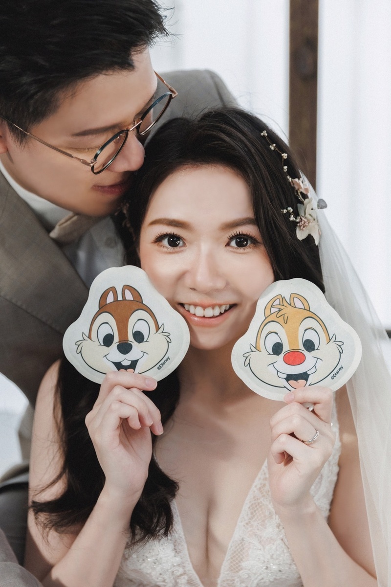 造型師子晴老師,在婚紗拍攝前也都有仔細看過我做的ppt,觀察我喜歡什麼樣的妝髮風格。拍攝當天,子晴老師細心地幫我化妝、推薦並搭配我會喜歡的風格飾品。拍攝過程中也認真盯緊我和新郎的造型有沒有跑掉。不得不說,我這個粗魯的新娘真的是辛苦她了。
