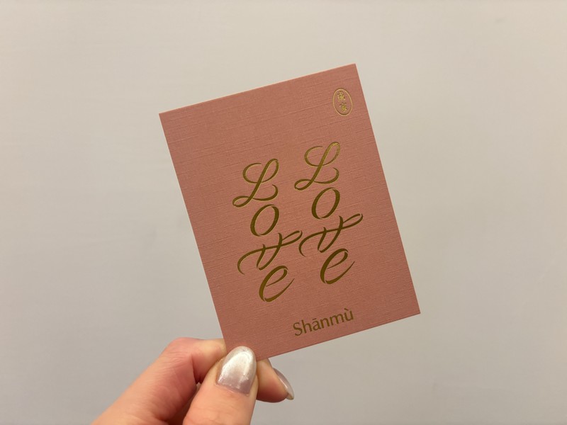 此外,山木島還貼心地在每盒喜餅中附上新人專屬謝卡,粉色燙金設計搭配以LOVE組成的囍字,低調中帶著浪漫質感,與一般常見的謝卡相比更顯獨特與精緻。從外盒到內容物,再到小小的謝卡細節,都讓人感受到品牌對品質與美感的堅持。
