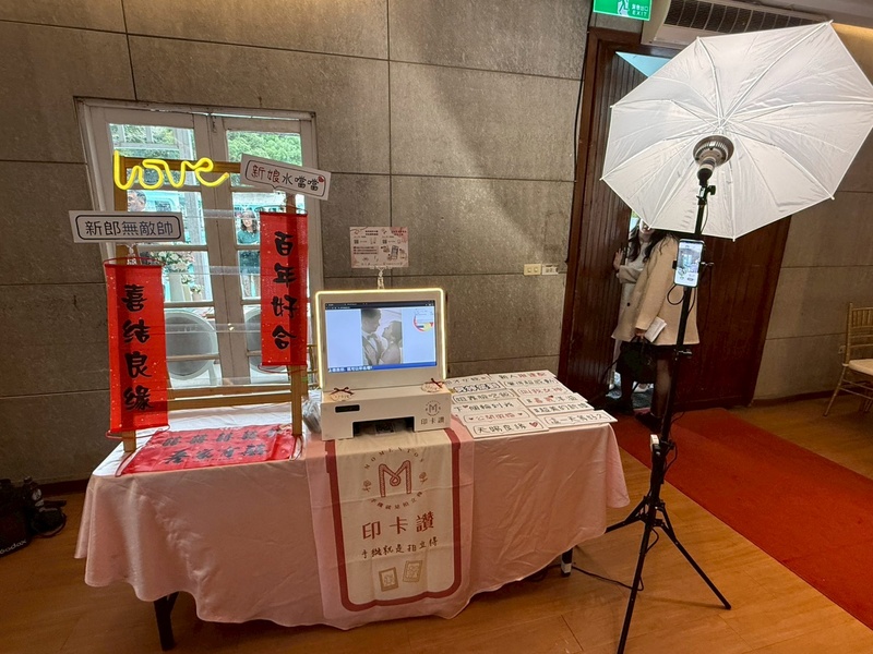 原本只是想說多一個互動小活動,沒想到直接變成婚禮當天超加分的一區😂他們兩個真的超級熱情又主動,一直幫忙引導大家怎麼用印卡讚,從上傳照片到現場拍照、列印,都教得很清楚又很有耐心,整個流程超順!