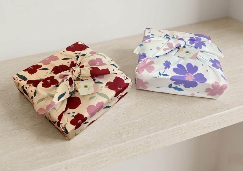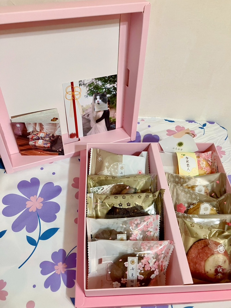 最後我們選了「京羽花錦織風呂敷」禮盒,風呂敷布則是茶花和紫苑兩款組合。且非常貼心的幫我們製作婚卡,直接放置於喜餅內。
