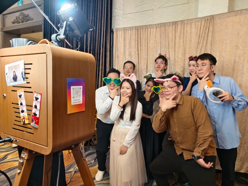 他們是現場直接拍、直接印。最有感的不是照片本身,而是那個「一起拍」的過程。親朋好友會自然聚在鏡頭前,有人負責搞笑、有人負責拉人進來,連平常比較安靜的朋友都被帶動起來,整個氣氛很快就熱起來。