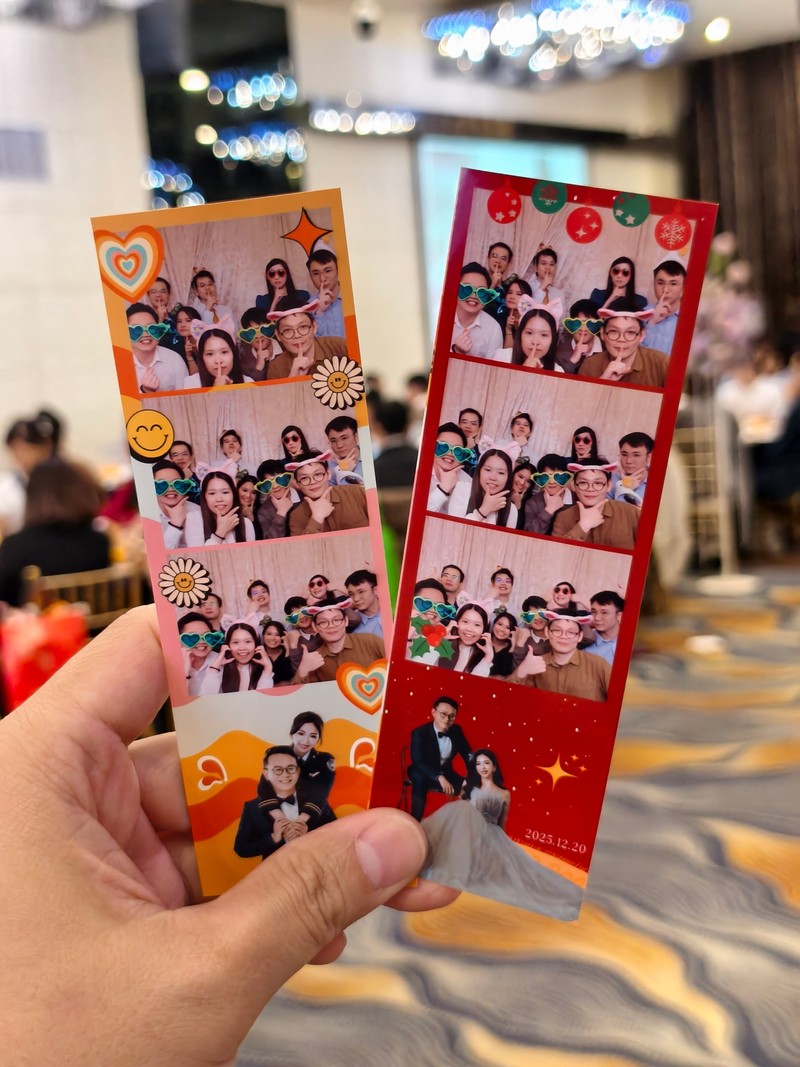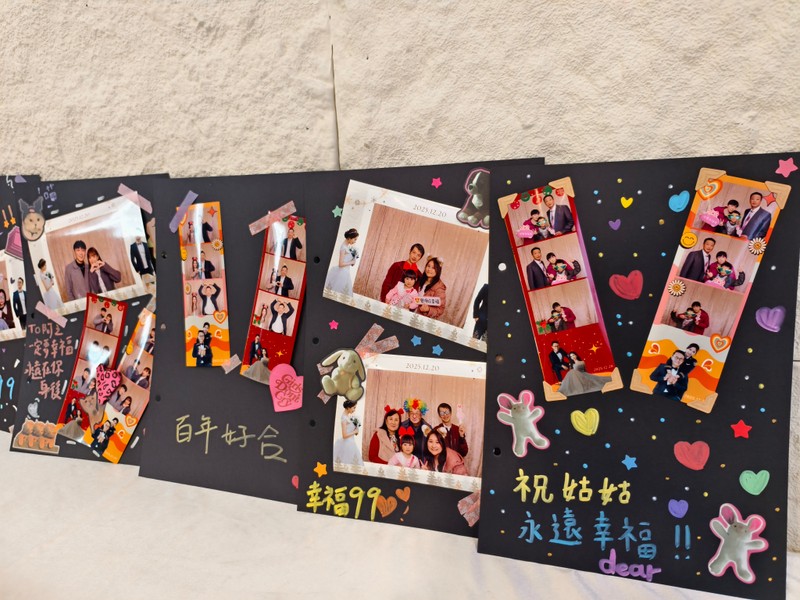 拍完不用等、不用滑手機,照片直接現場印出來,拿在手上的那一刻,其實就已經變成一個小小的紀念品。很多人會順手帶走,有些還會寫字、貼在祝福區,甚至變成婚禮現場的一種互動延伸。