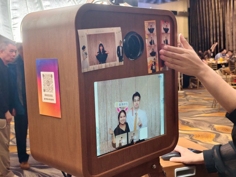 一種是「手機上傳型」:賓客用自己的手機拍照,上傳到指定網站,然後由現場的噴墨印表機列印,最後再去領照片。乍看之下很方便,但實際參與過就會發現,整個流程其實是「各拍各的」,少了那種現場一起玩的氛圍。大家低頭滑手機、修圖、挑照片,互動變少,甚至有些長輩根本不太會操作,最後變成少數人在玩,大部分人在旁邊看。