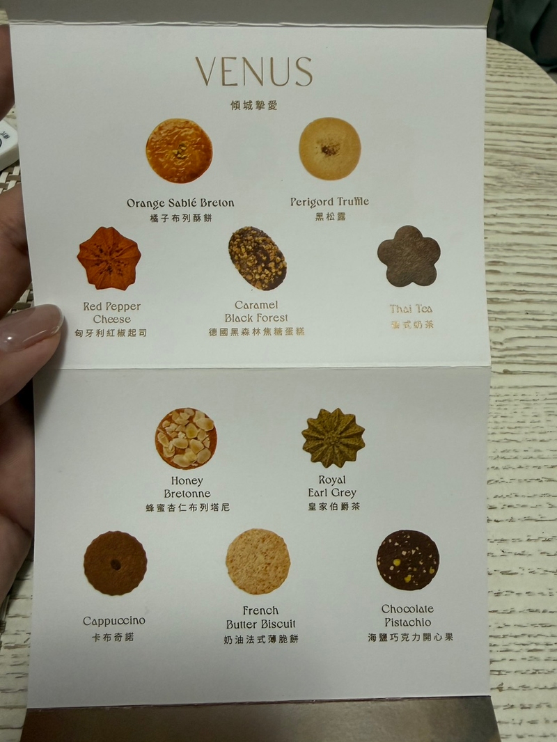 口味上更是充滿層次,最讓我驚艷的是 [黑松露] 餅乾,濃郁的松露香氣帶點鹹香,吃起來優雅又不膩口;[橘子布列酥餅] 則展現了絕佳的酥脆感,柑橘的清甜點綴在奶油香氣中,非常爽口。