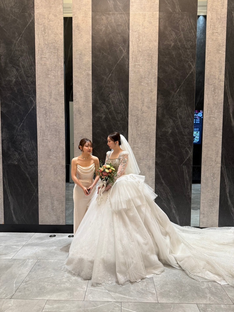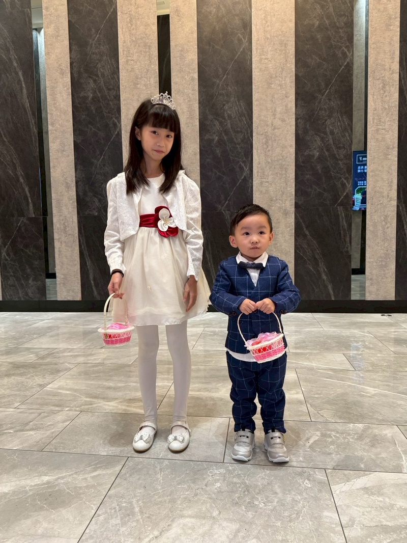 從決定婚期開始,生活就像按下快轉鍵,一邊忙著育兒,一邊穿插著試禮服、確認流程、挑音樂與安排座位。過程中偶爾焦慮、偶爾猶豫,但更多的是期待與被身邊的人支持的感動。到了婚禮當天,看著場地慢慢成形,原本的緊張竟然被一種安心取代,因為知道有一群專業又貼心的團隊在背後撐著我們。