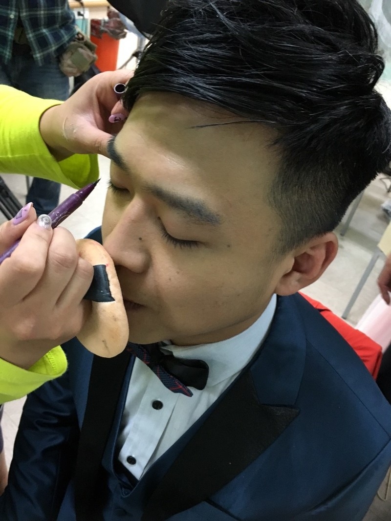後來新郎自己也想要化點不一樣的妝~涵涵立馬幫他加上!!!