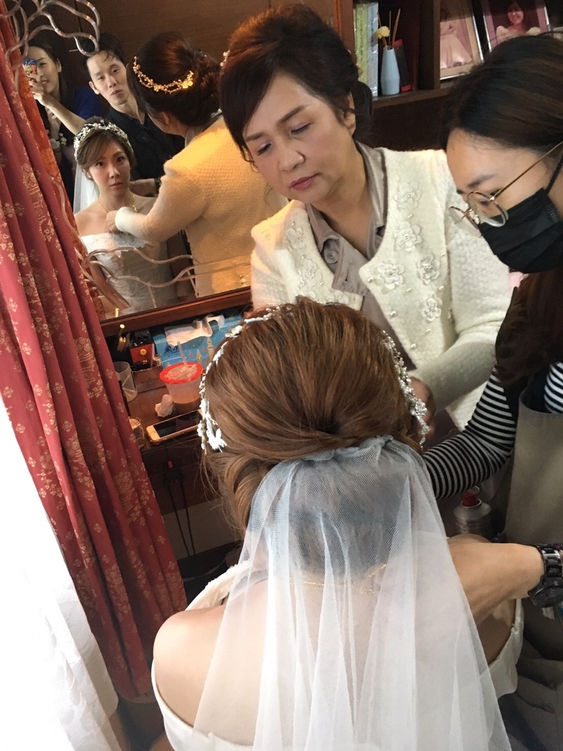 迎娶我是選擇素雅的低盤髮,蕎蕎老師還有送一位媽媽妝喲!媽媽妝一點也不輸新娘喲!我媽媽超滿意蕎蕎老師幫她用的妝髮