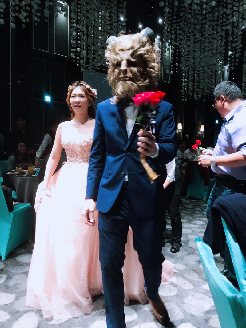 二次進場我們是選擇美女與野獸的主題進場,我選擇比較浪漫的造型?