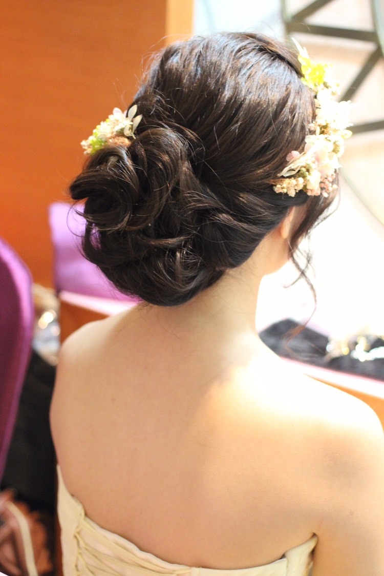 宴客前蕎蕎一樣是很仔細的跟我溝通每套禮服造型,其中我指定白紗要梳包頭、二進禮服要搭低馬尾,其他的就全部交給她了。