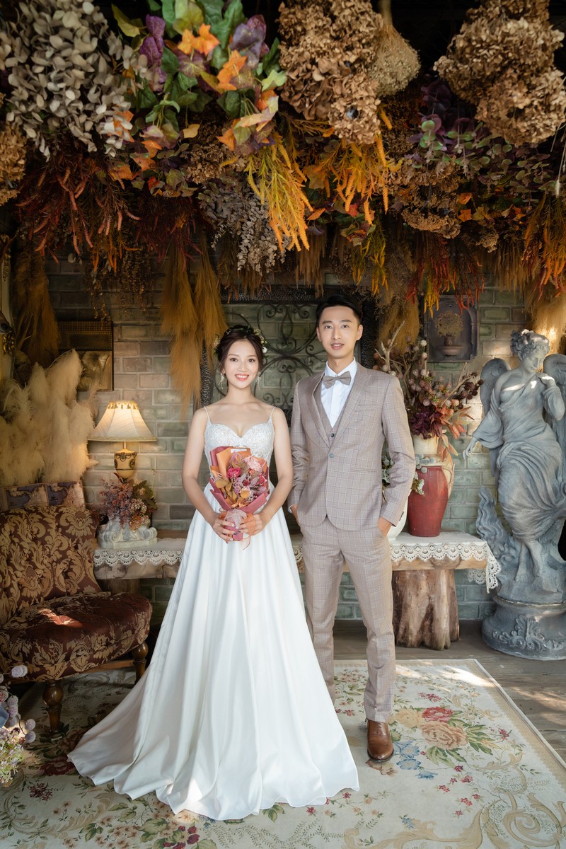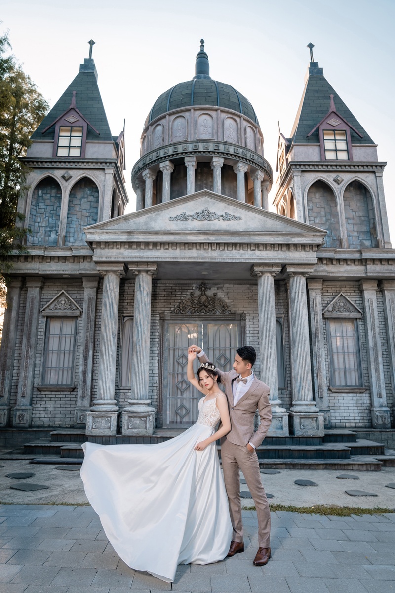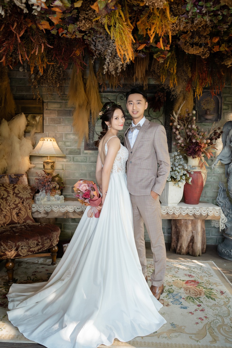 3.攝影師、攝影助理:我到時尚官網看了很多作品後,找到一組很喜歡的作品,是時尚攝影師劉sir拍的,所以我們也選了劉sir操刀,劉sir是時尚御用攝影師,不是外面配合的,所以非常負責、專業,拍攝時很有效率,也很會講笑話帶氣氛,還會兼當車神載我們到婚紗基地,我只能給他100分!拍出來的作品就直接讓大家看成品,作品會說話,非常自然、活潑、美麗,比我們想像中更美更厲害!朋友都說我們的婚紗很好看😊攝影助理妹妹很用心,幫老公選了一件歐式貴族風的深綠色花紋西裝,非常帥!拍攝時,助理妹妹很認真,下大雨還捨命淋雨幫我們打光,真的是感動啊⋯謝謝妹妹!