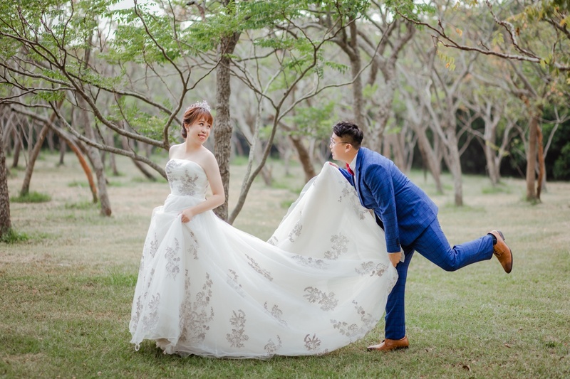 在拍婚紗的時候、小嫻也時常注意我的裙擺,