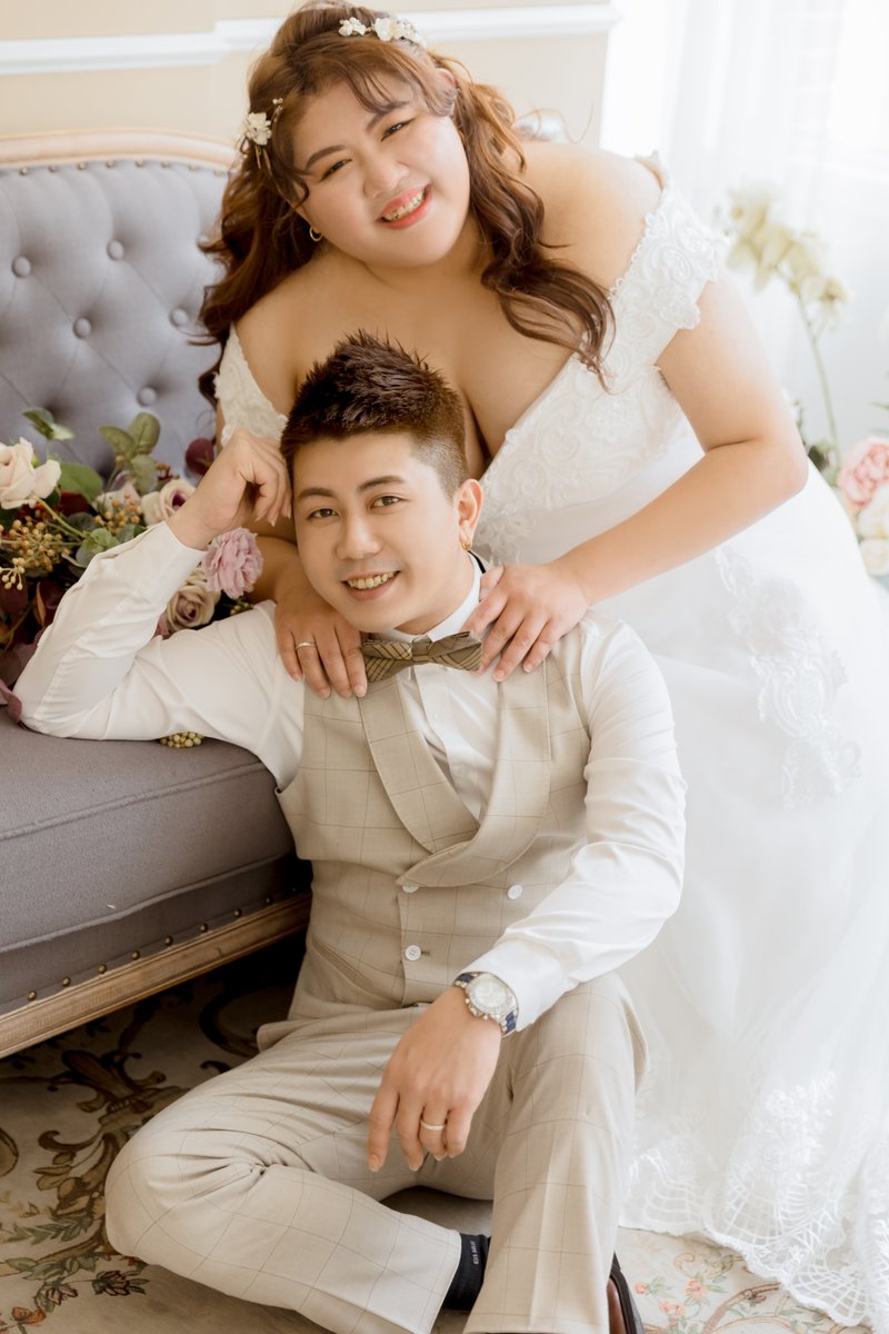 到中壢艾格斯,需要搭電梯到三樓,電梯門打開,門口的設計很美,進去到店面,裡面的裝潢跟裝飾擺設,讓我覺得非常溫馨,裡面也有兩對新人正在諮詢跟挑照片,接待我們的是娜姐(恩娜),因為我們沒有預約(因為疫情關係,需要預約才有辦法做諮詢),老公大約簡單說我們拍照的需求,一說娜姐明白我們的需求,老公也談到說因為我是超級棉花糖,也擔心我沒有婚紗跟禮服可以穿,娜姐就說:不用擔心,絕對有我可以穿的禮服跟婚紗,而且還會幫你用的美美的,我心裡非常高興,二話不說就跟老公說我要這間,娜姐讓我跟另外一個姐姐去體驗禮服,讓我穿看看,心裡超級開心,終於有婚紗跟禮服可以穿了!!於是娜姐也介紹方案跟細節給我們了解,也當天簽了合約囉!