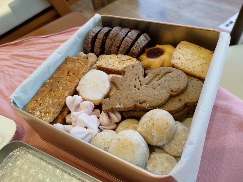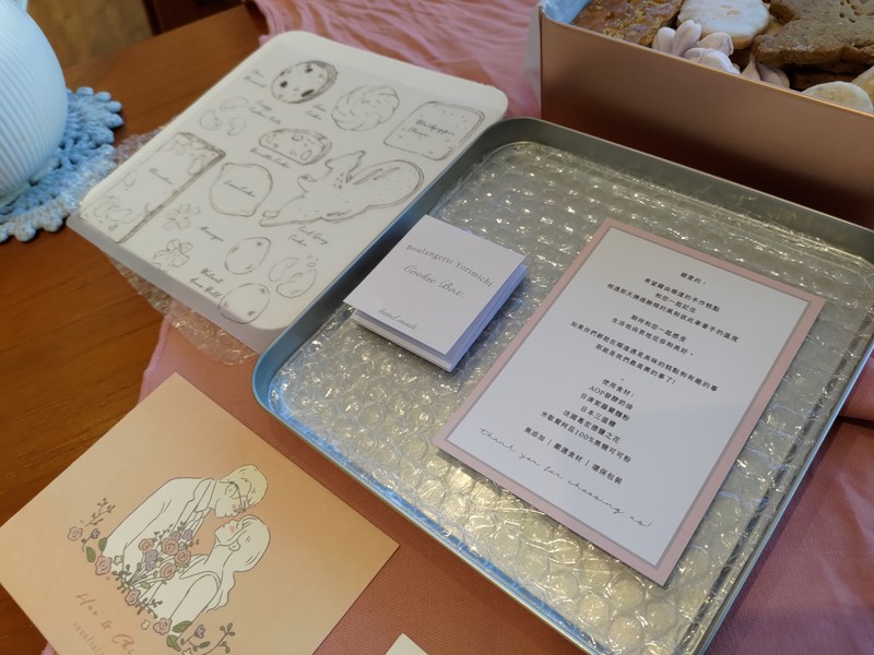 喜餅是主打健康,不添加香料且低糖,連素食者、糖尿病患者都能安心品嚐,味道有別於一般喜餅具有濃厚的香味,比較不甜,但細細品嘗起來非常好吃,每種餅乾都能吃出製餅師的用心與對於健康理念的堅持,絕對不會讓人有種整盒喜餅吃起來都一樣的感覺。餅乾跟馬林茶非常絕配,可惜喜餅沒有附上馬林茶包讓人非常遺憾(老闆你聽到我的心聲了嗎?)。