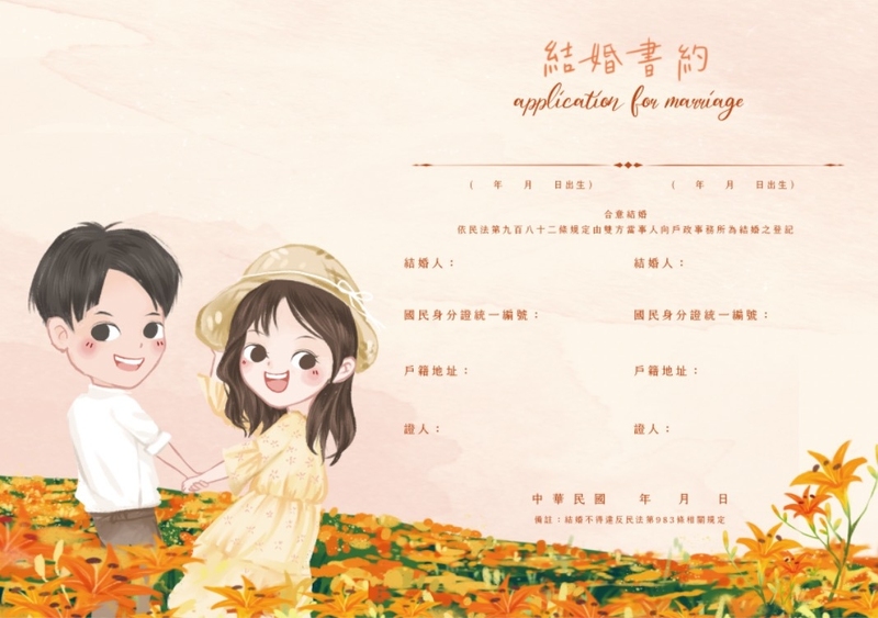 確認完稿之後,他會根據不同商品再客製化,讓所有設計都是同一個概念,但又有一點點不一樣,讓人感覺很用心啊~(下面是結婚書約)