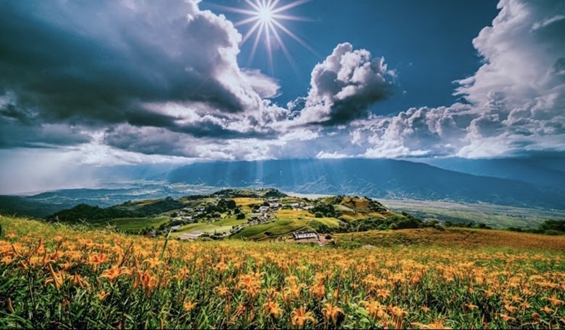 但因為初稿跟我想像的不太一樣,所以我再丟了網路搜尋的六十石山金針花照片,指定要有去看金針花的郊遊感。