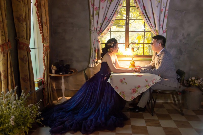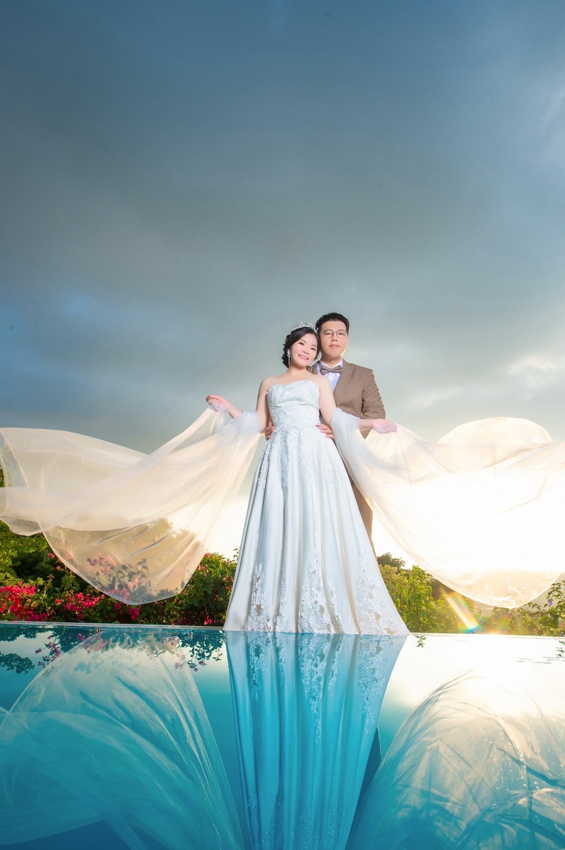 我們一開始想的很簡單,因為很怕拍外景會很熱很累,所以想說拍棚內的就好了,結果接待的淑華姐給我們看一些外拍照片,我們覺得很美,又跟我們說有冷氣跟廁所,不會太累,我就心動了。雖然是有額外付一些費用,但是照片出來就覺得花得很值得。