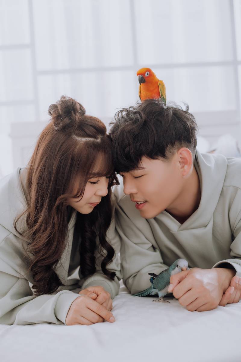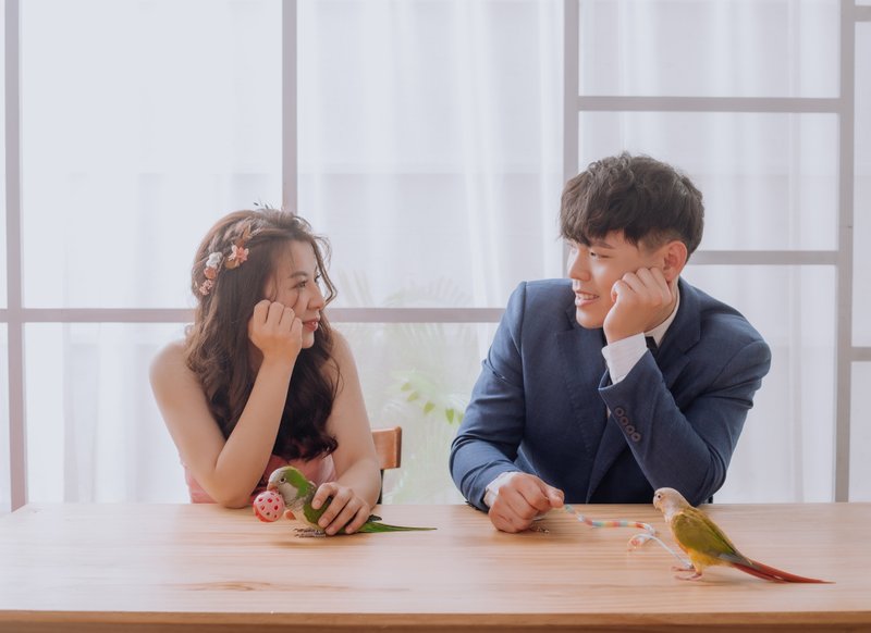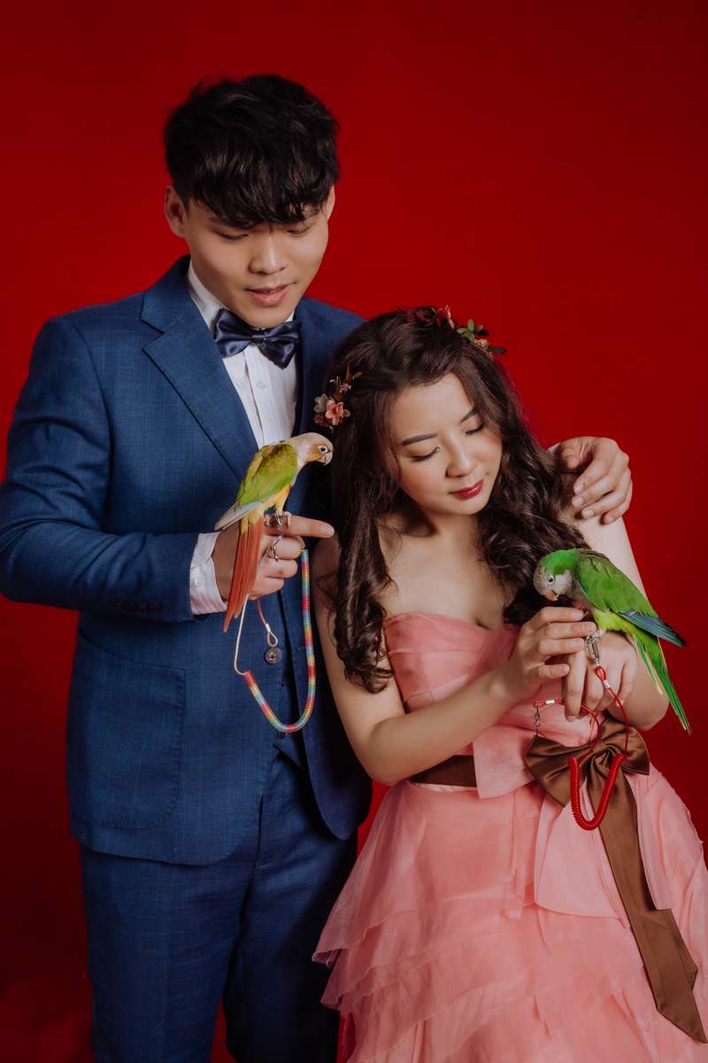 在拍照跟造型的溝通上 我真的也沒有什麼條件 就只是想跟鸚鵡一起拍照 有點造成造型師跟攝影師的困擾