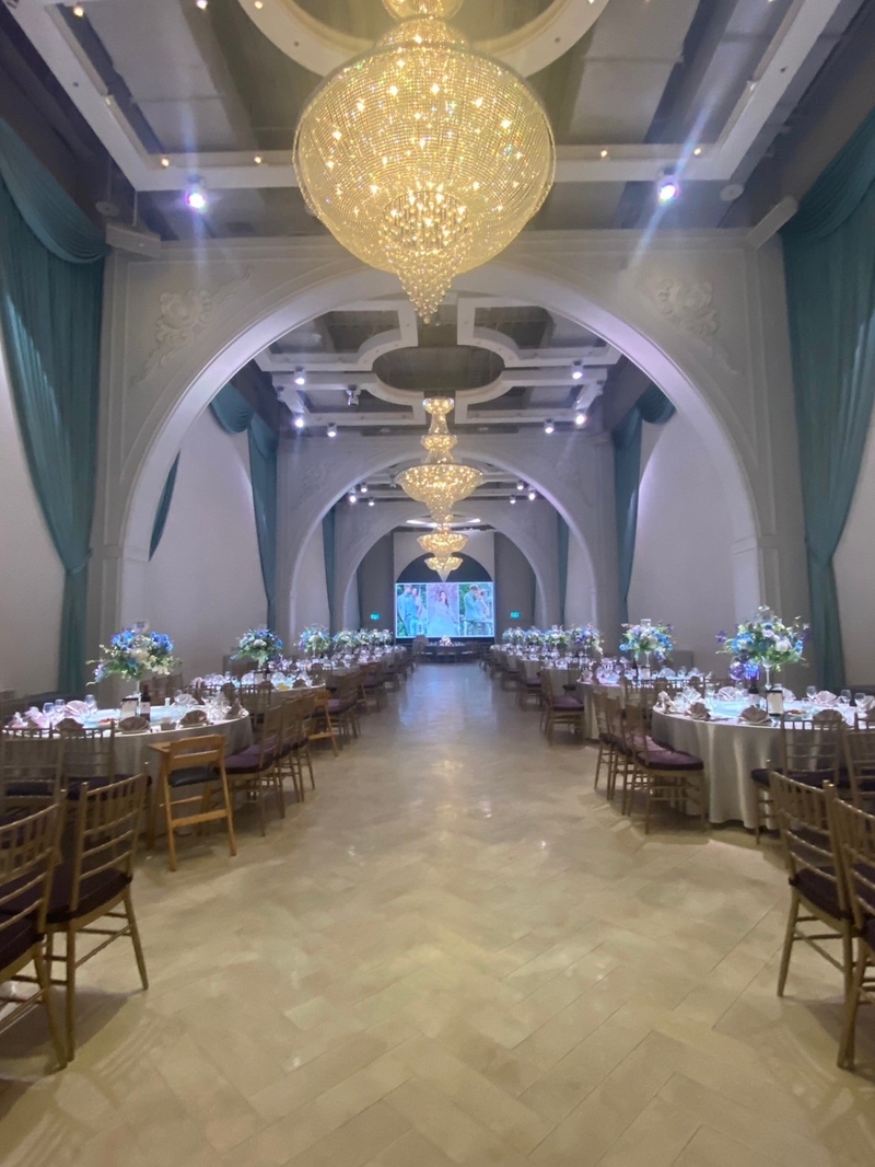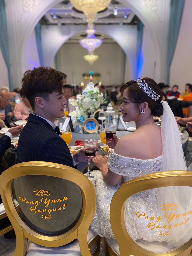 婚禮最重要的場地,當初參觀了好幾間都沒有喜歡的風格,直到來到彭園,一見鍾情A廳的風格,謝謝業務滿滿&Vita的協助和解說,讓我們可以在這個美美的宴會場地完成人生大事。