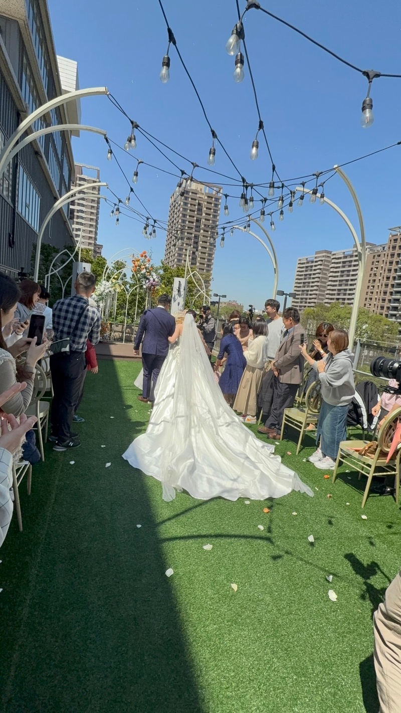 一開始看到A廳的場地,直接被吸引,完全是喜歡的風格,挑高、直線、走道也非常大,穿大拖尾也不會卡到兩邊賓客的座位,業務文哲也服務的很完整,方案包含很多,讓一開始備婚的我們省了不少心,最感謝的是主持人Grace,一步一步引導我們要做什麼事情,提醒、協助、支持,不管是事前的準備還是當天的過程都非常順利,菜色也很好吃,親朋好友回饋滿滿,另外還想感謝當天協助新人的外場幹部浩恩及小管家,其中進退場時大門的控管做的非常非常好👍沒有人亂闖破壞了畫面,也想感謝音控小葉,精準的下音樂讓活動進行得非常順利,真的非常感謝協助這一切的工作人員,讓當日婚禮圓滿結束!