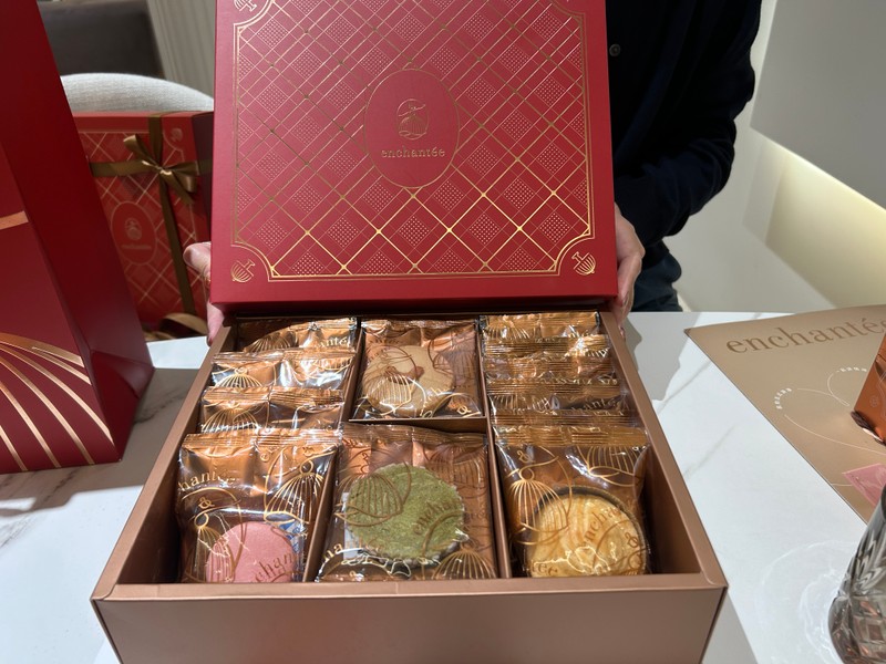 樂朗奇的禮盒每款都相當典雅,ㄧ進門就被法式菱格紋所吸引,線條設計的非常細緻,加上金色緞帶,紅金雙色搭配起來非常喜氣有質感,搭配高訂款的提袋時髦優雅!