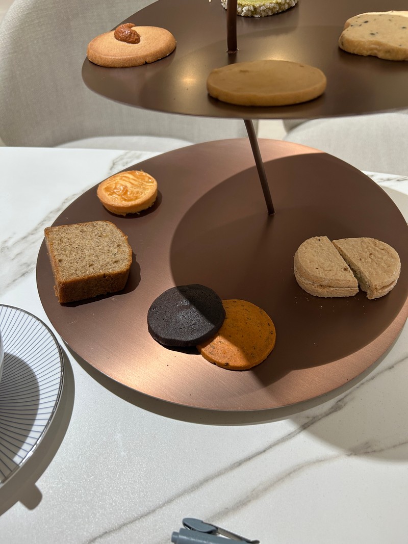 接待我們的是嘉芯,親切的口吻讓我們在試吃的過程都非常愉快舒服,當日總共試吃了13款手工餅乾及點心,從清淡的口味試吃到較重的口味,有甜有鹹,每款餅乾都相當有特色,巧克力鹽之花可可味道香濃微苦,微酸愛情草甜餅可以吃到淡淡的薰衣草味,很天然非常特別,焦糖堅果塔非常紮實飽滿,不會ㄧ咬就碎,雙人棉花糖口感特別,甜而不膩,最後印象最為深刻的是加熱後的奶酒可可瑪德蓮,外酥內軟加上淡淡的酒香相當驚艷!