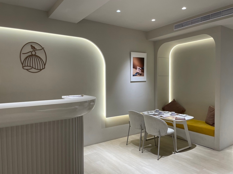 大門口呈現低調沉穩的配色,進到室內採光明亮燈光也很柔和,