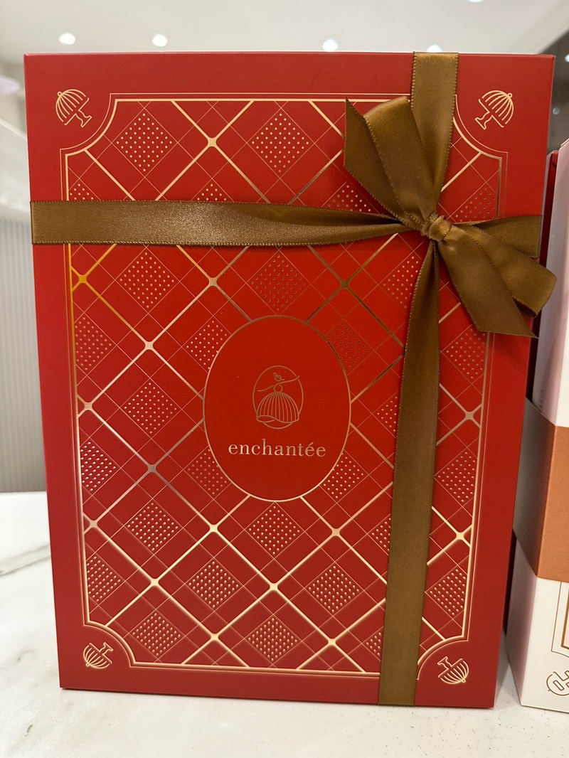 有質感的紅色配上燙金法式菱格紋,顯得優雅又喜氣,整體造型是很有氣質的感覺,不是那種俗俗的紅色大家可放心,並且免費附上緞帶真的很加分,外面有的店家緞帶是要另外加購的。