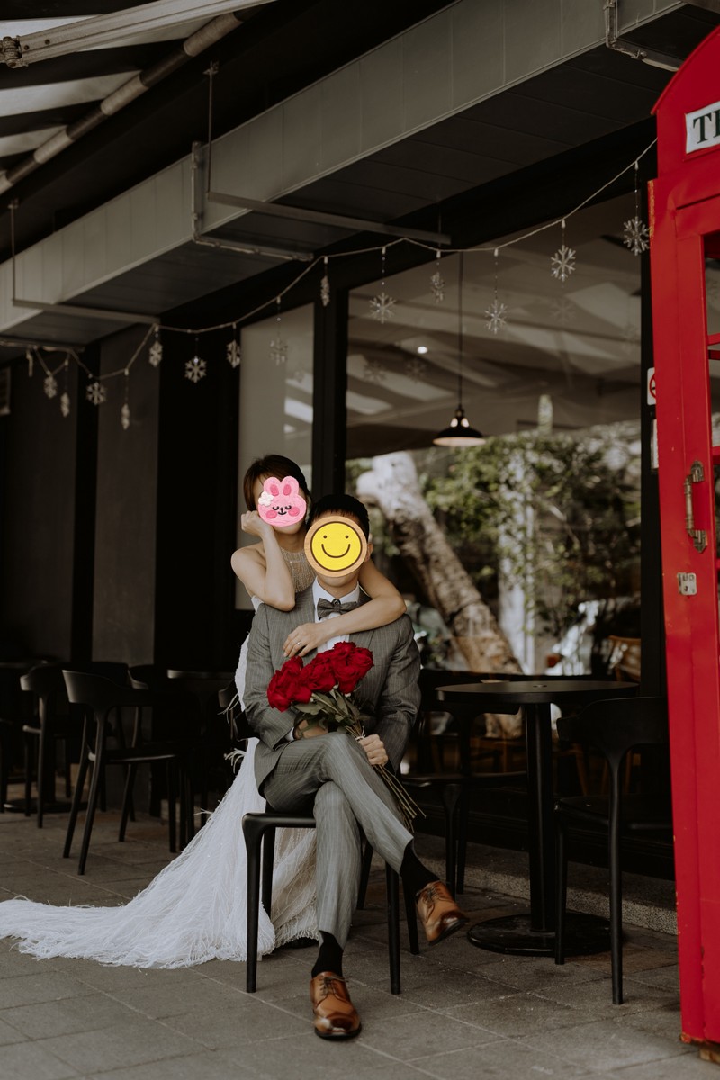 我的攝影師是柯柯,化妝師是Saya靜儀,溝通過程也都很舒服,拍攝時要準備的道具,男生禮服挑選,等等很多小細節,也都有提醒我,給我很多意見,讓我可以很快的準備好。