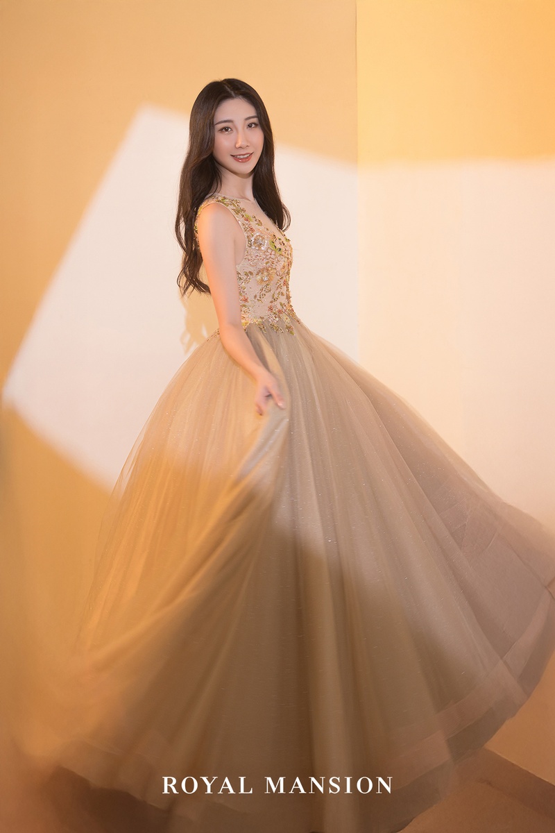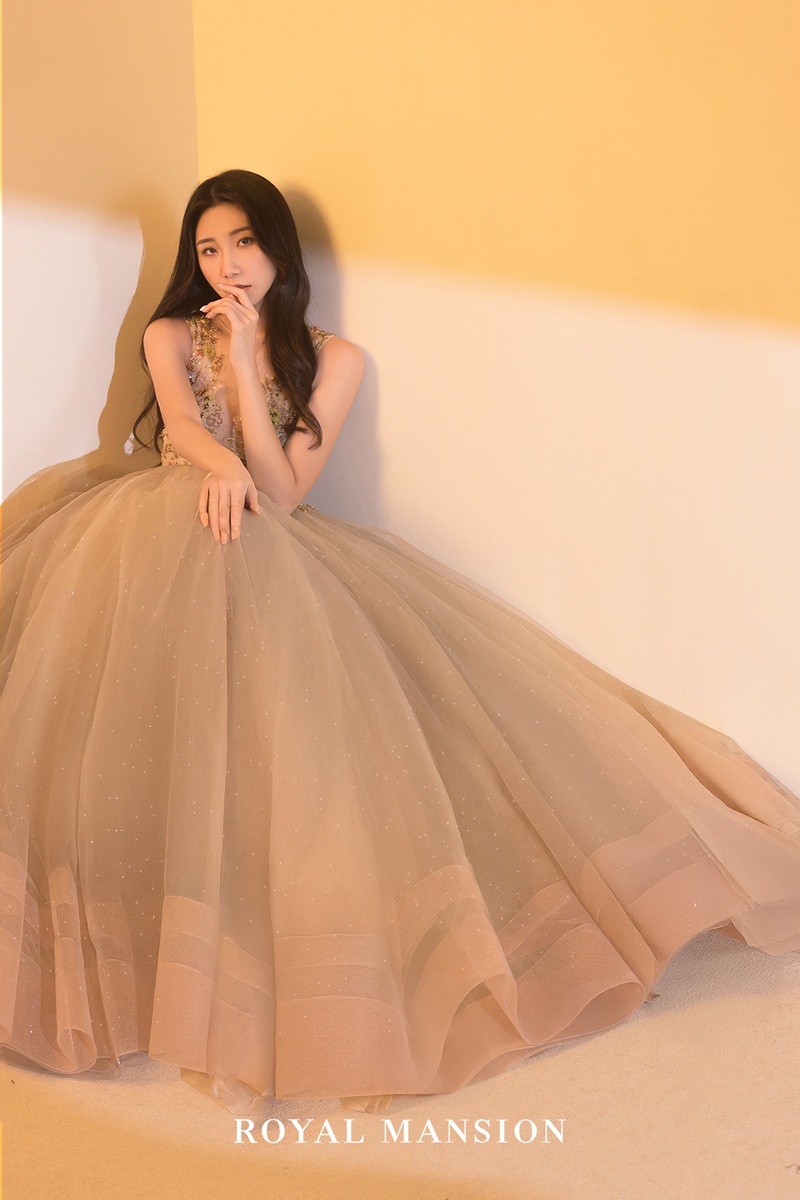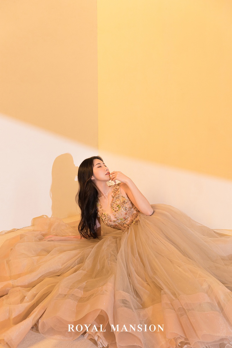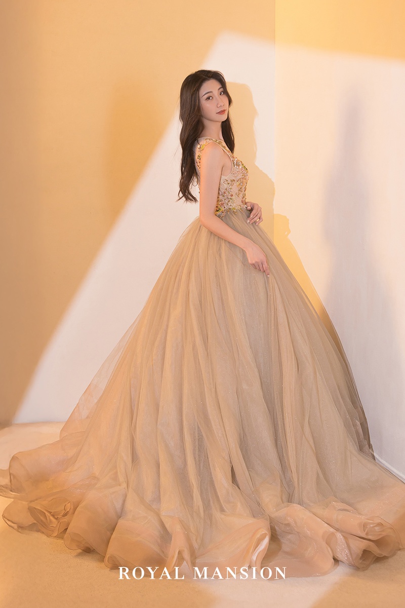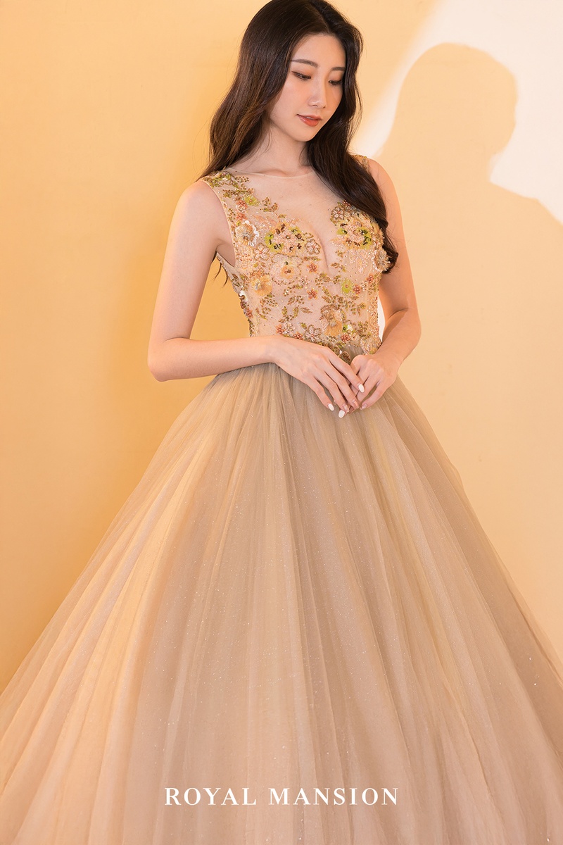 Royalwedding 立體刺繡可可金aline透膚網紗