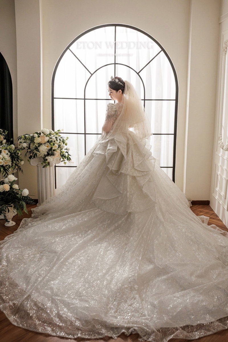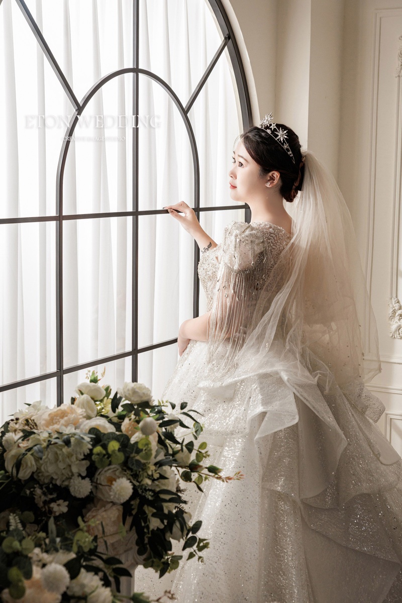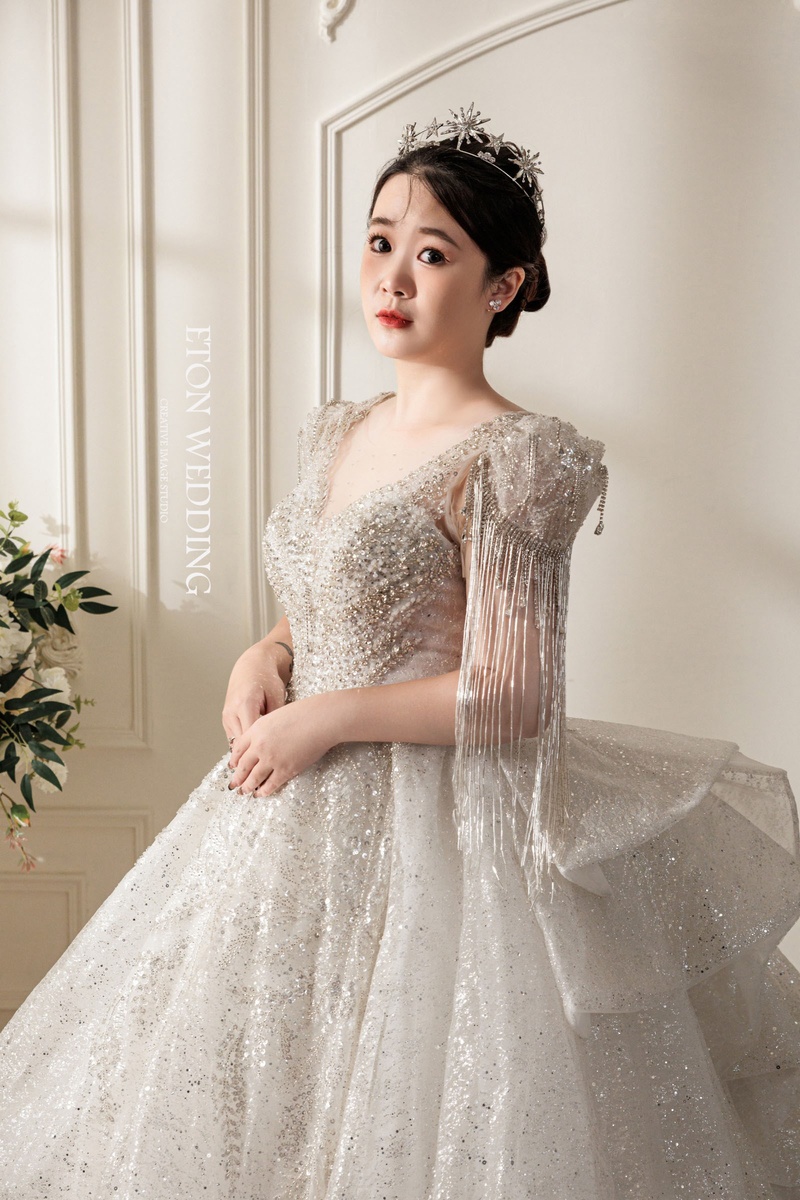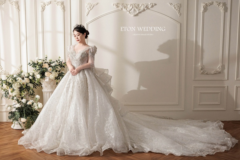 2025新款棉花糖女孩婚紗(蓬袖桃心領)